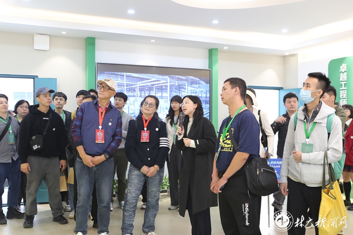 ▲台湾青年企业家和学生参观我校农林卓越工程师培养实践基地创新创业成果展示厅