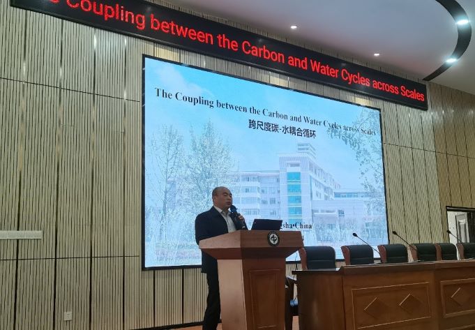 学术交流以澳大利亚联邦科学与工业组织首席科学家王应平教授所做“The coupled models of water and carboncycles: retrospective and prospective views”主旨报告揭开序幕,随后美国新罕布什尔大学地球系统研究中心肖劲峰教授做了“Understanding diurnal variations of photosynthesis and transpiration using emerging satellite observations”的学术报告,西安交通大学人居及土木工程学院吴一平教授做了“Impacts of climate and land use changes on water and carbon coupling cycles at watershed scale: modeling assessment”的学术报告,刘曙光教授做了“Challenges in reconciling differences in carbon-water coupling across scales”的报告、中国林学会张劲松教授、孙守家教授分别作了“中国人工林碳水过程观测研究机遇与挑战”、“Divergent responses of intrinsic wateruse efficiency and net primaryproductivity to climate change in different plantations”报告,班戈大学Taimoor Hassan博士、北京林业大学同小娟教授、我校林学院林辉教授、孙华教授、计信学院易积政副教授、生科院卢伟志副教授也纷纷做了主题报告。