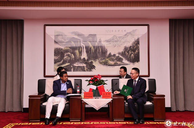 访问期间,兰德里亚纳索洛与在校的2名马达加斯加留学生进行了亲切交流。